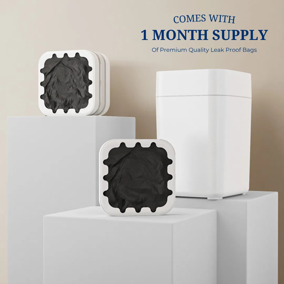 The revolutionary trash can that automatically seals and changes bags for you. Say goodbye to messy bag changes forever.